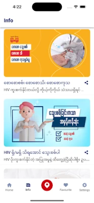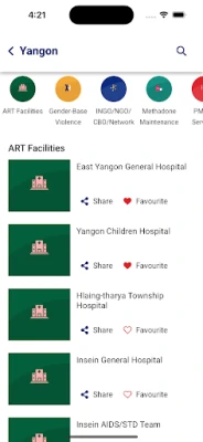 The mobile app has updated information on facilities providing anti-retroviral therapy (ART) and methadone maintenance therapy (MMT) throughout Myanmar. The user can navigate the location of the facility as per state/ region and then the facility information in the app.