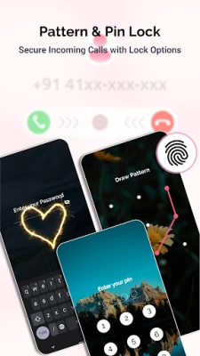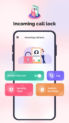 Lock your incoming call screen with five different types of securities and different types of background themes.