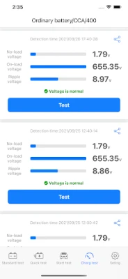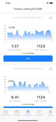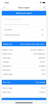 3. Support standard, fast, start, and charging tests, one-key generation of test reports, one-key sharing, etc