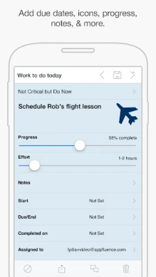 Create tasks at the touch of a button, set due dates, add notes, share files